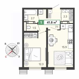 Продаётся 1-комнатная квартира в строящемся доме (11 очередь), срок сдачи: III-кв. 2028, общей площадью 42 кв.м., на 1 этаже. Жилой комплекс "Город Спутник" представляет собой комплексную застройку.