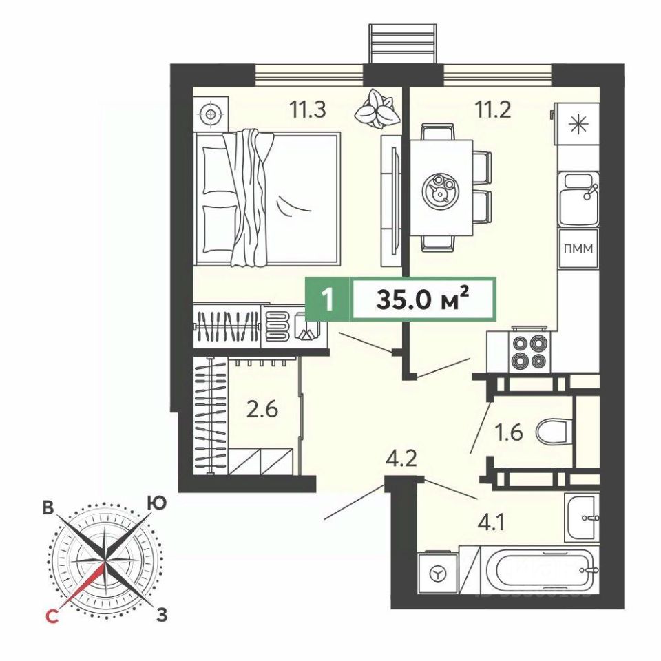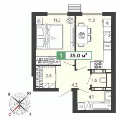 Продаётся 1-комнатная квартира в строящемся доме (11 очередь), срок сдачи: III-кв. 2028, общей площадью 35 кв.м., на 1 этаже. Жилой комплекс "Город Спутник" представляет собой комплексную застройку.
