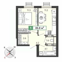 Продаётся 1-комнатная квартира в строящемся доме (11 очередь), срок сдачи: III-кв. 2028, общей площадью 35 кв.м., на 2 этаже. Жилой комплекс "Город Спутник" представляет собой комплексную застройку.