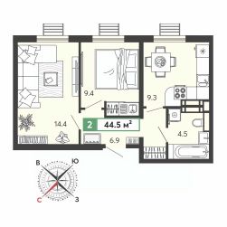 Продаётся 2-комнатная квартира в строящемся доме (11 очередь), срок сдачи: III-кв. 2028, общей площадью 45 кв.м., на 3 этаже. Жилой комплекс "Город Спутник" представляет собой комплексную застройку.