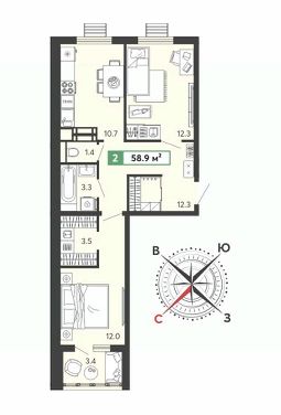 Продаётся 2-комнатная квартира в строящемся доме (11 очередь), срок сдачи: III-кв. 2028, общей площадью 59 кв.м., на 7 этаже. Жилой комплекс "Город Спутник" представляет собой комплексную застройку.