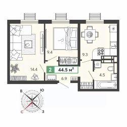 Продаётся 2-комнатная квартира в строящемся доме (11 очередь), срок сдачи: III-кв. 2028, общей площадью 45 кв.м., на 8 этаже. Жилой комплекс "Город Спутник" представляет собой комплексную застройку.
