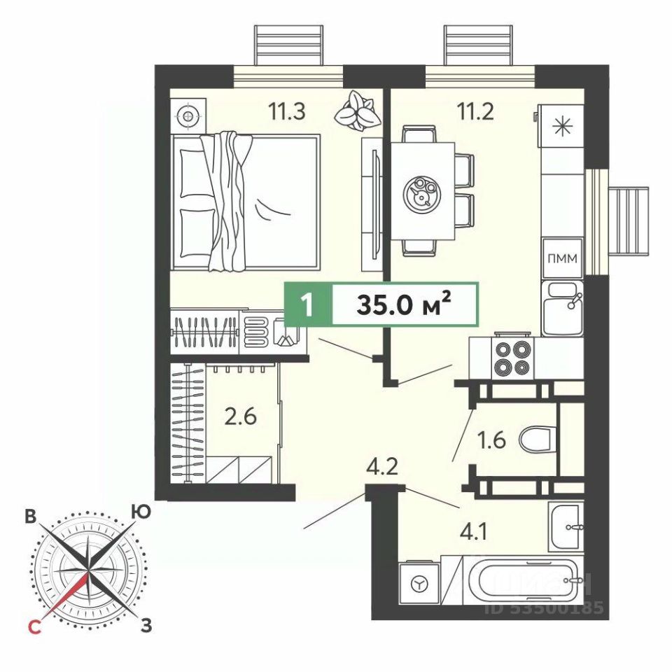 Продаётся 1-комнатная квартира в строящемся доме (11 очередь), срок сдачи: III-кв. 2028, общей площадью 35 кв.м., на 10 этаже. Жилой комплекс "Город Спутник" представляет собой комплексную застройку.