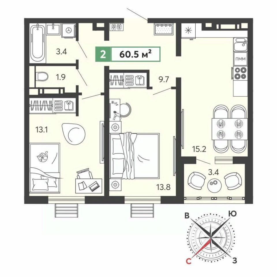 Продаётся 2-комнатная квартира в строящемся доме (11 очередь), срок сдачи: III-кв. 2028, общей площадью 61 кв.м., на 15 этаже. Жилой комплекс "Город Спутник" представляет собой комплексную застройку.