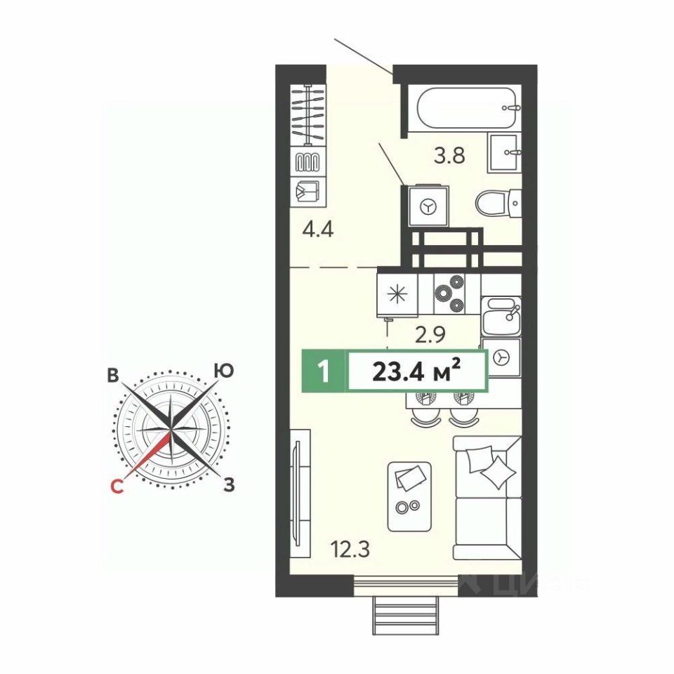 Общая площадь23 м²