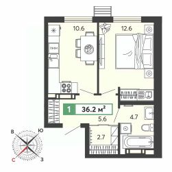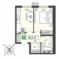 Продаётся 1-комнатная квартира в строящемся доме (11 очередь), срок сдачи: III-кв. 2028, общей площадью 36 кв.м., на 1 этаже. Жилой комплекс "Город Спутник" представляет собой комплексную застройку.