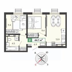 Продаётся 2-комнатная квартира в строящемся доме (11 очередь), срок сдачи: III-кв. 2028, общей площадью 44 кв.м., на 3 этаже. Жилой комплекс "Город Спутник" представляет собой комплексную застройку.