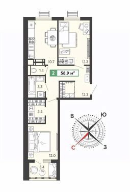 Продаётся 2-комнатная квартира в строящемся доме (11 очередь), срок сдачи: III-кв. 2028, общей площадью 59 кв.м., на 6 этаже. Жилой комплекс "Город Спутник" представляет собой комплексную застройку. Проектом предусмотрено благоустройство микрорайона: детские площадки, гостевая парковка, зоны отдыха и озеленение, детские сады, школы, поликлиники и спортивно-развлекательные комплексы
