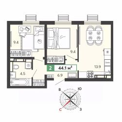 Продаётся 2-комнатная квартира в строящемся доме (11 очередь), срок сдачи: III-кв. 2028, общей площадью 44 кв.м., на 13 этаже. Жилой комплекс "Город Спутник" представляет собой комплексную застройку.
