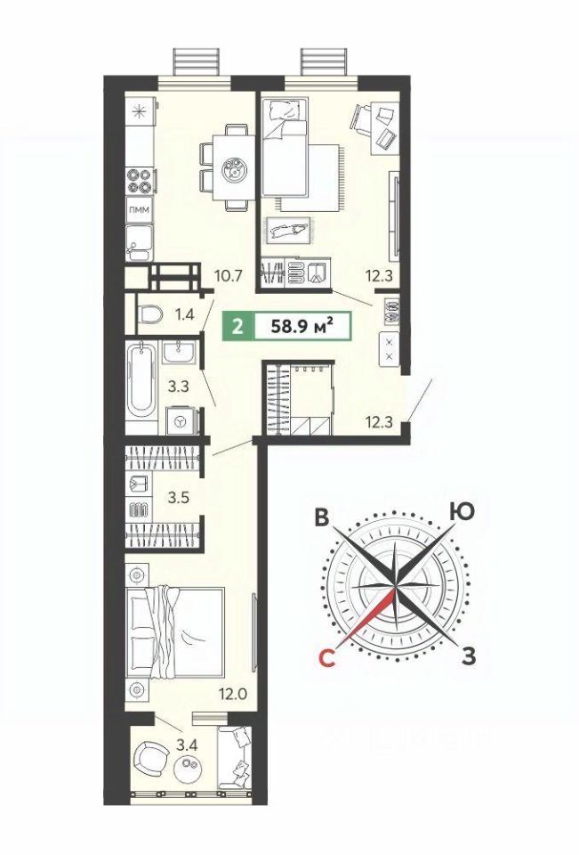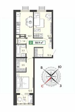 Продаётся 2-комнатная квартира в строящемся доме (11 очередь), срок сдачи: III-кв. 2028, общей площадью 59 кв.м., на 14 этаже. Жилой комплекс "Город Спутник" представляет собой комплексную застройку.