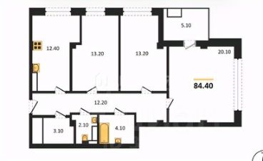Жилая площадь: 46,5 м2 (13,2+13,2+20,1)