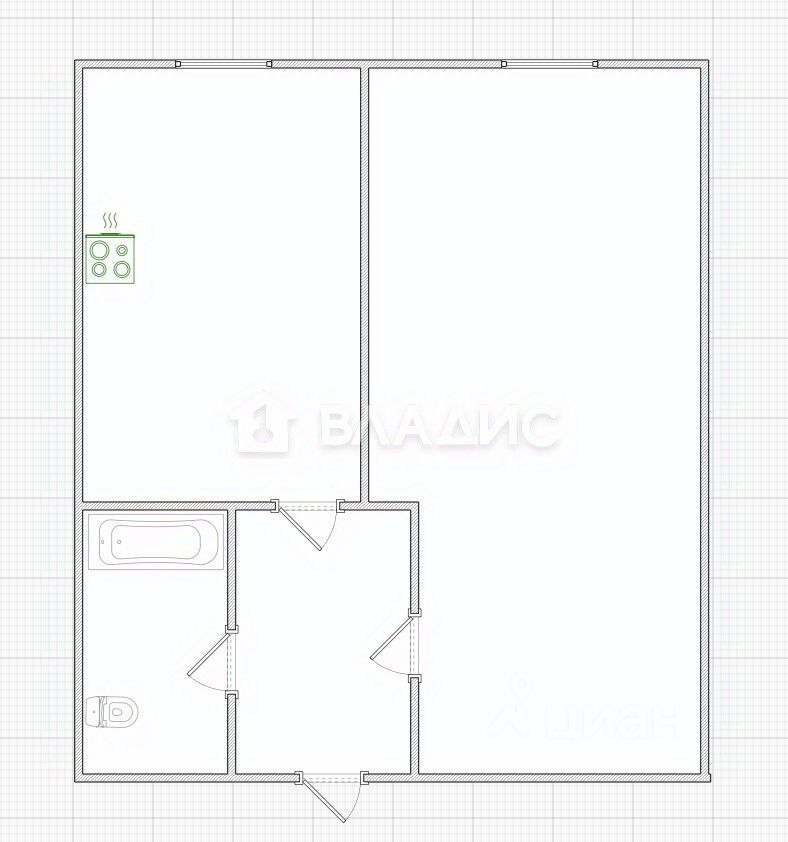 Общая площадь квартиры составляет 33,9 кв. м, из которых 15,6 кв. м — жилая площадь, а 10,1 кв. м — кухня. Высота потолков 2,7 м создаёт ощущение простора и свободы. Окна выходят во двор, что обеспечивает тихий и уютный микроклимат.