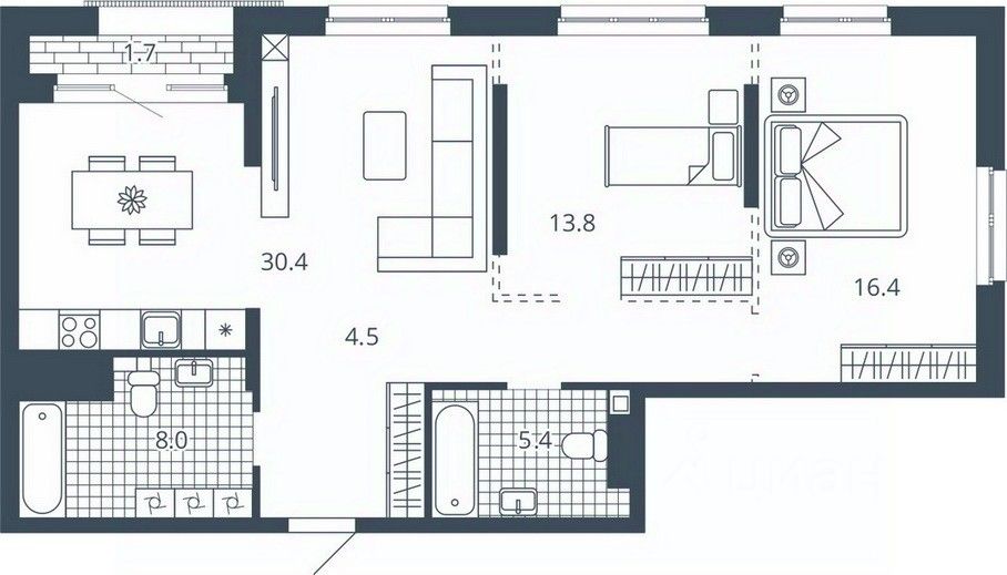 Площадь кухни30,4 м²
