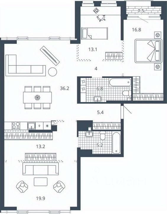 Площадь кухни36,1 м²