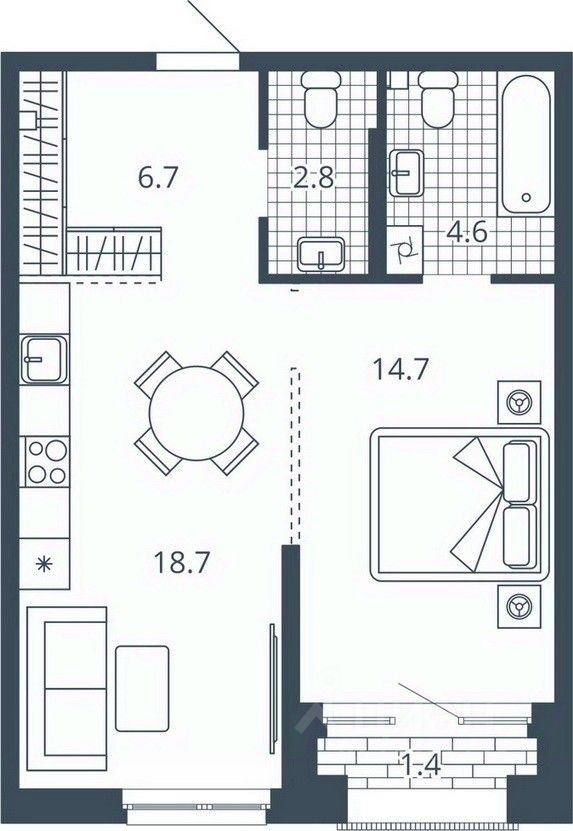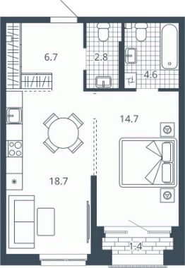 Жилая площадь14,7 м²