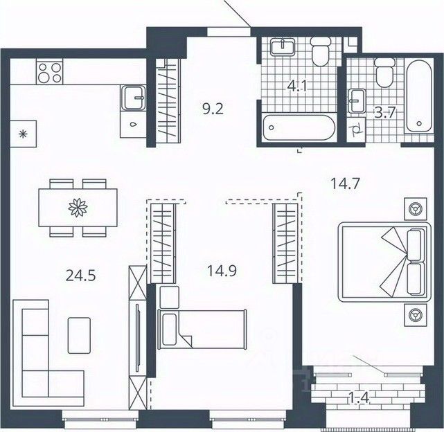 Жилая площадь29,6 м²