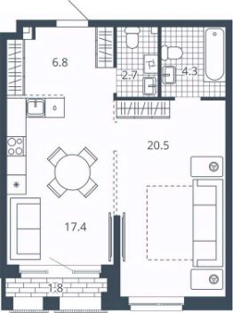 Площадь кухни17,4 м²