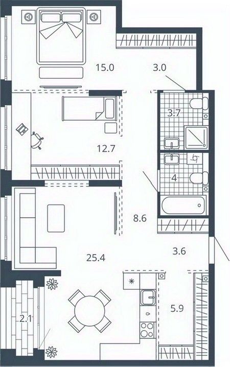 25,4 м²
