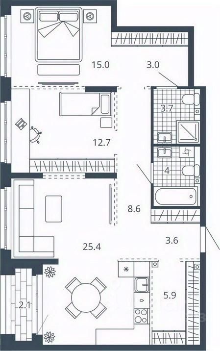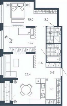 Площадь кухни25,4 м²