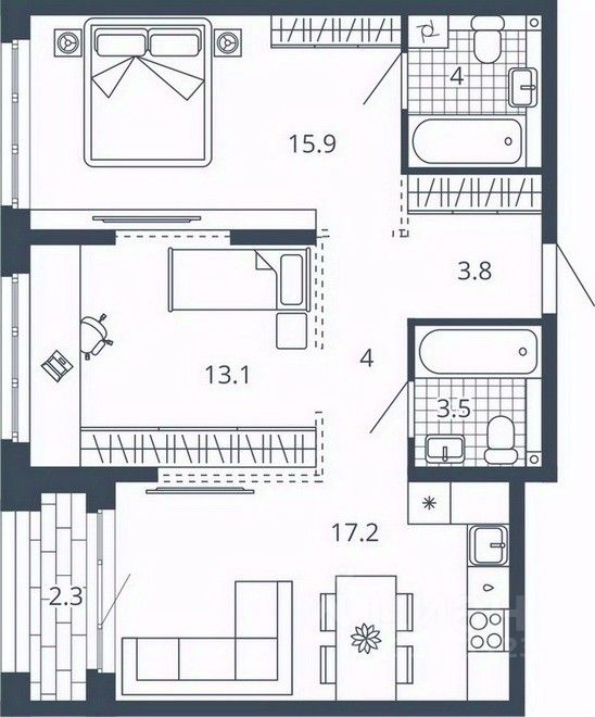 Площадь кухни17,2 м²