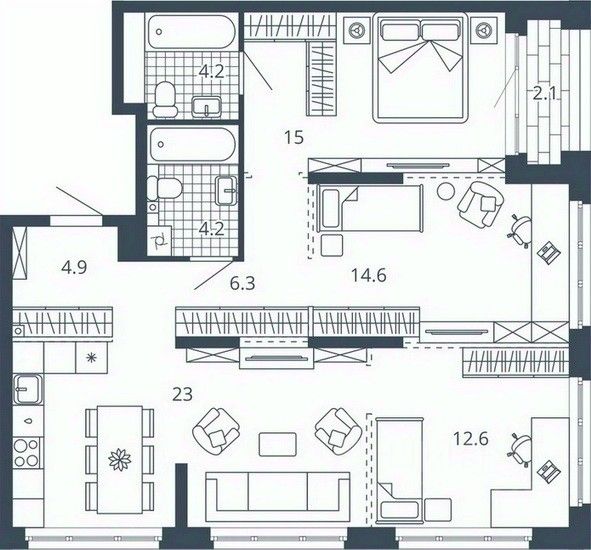 Площадь кухни23 м²
