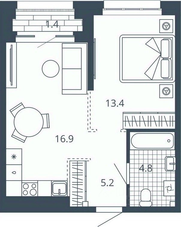Жилая площадь13,4 м²