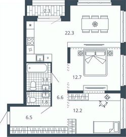 Площадь кухни22,3 м²