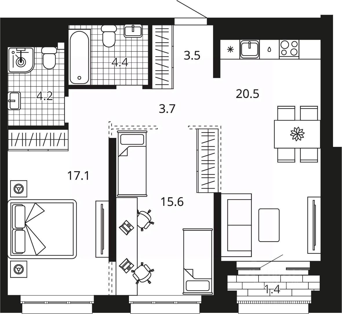 Площадь кухни20,5 м²