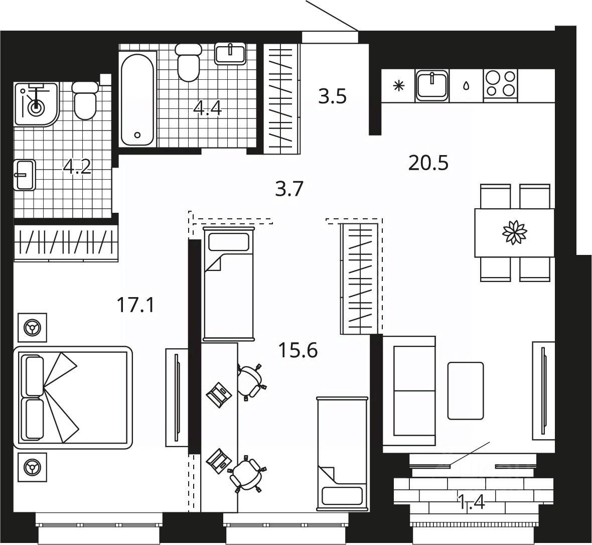 20,5 м²