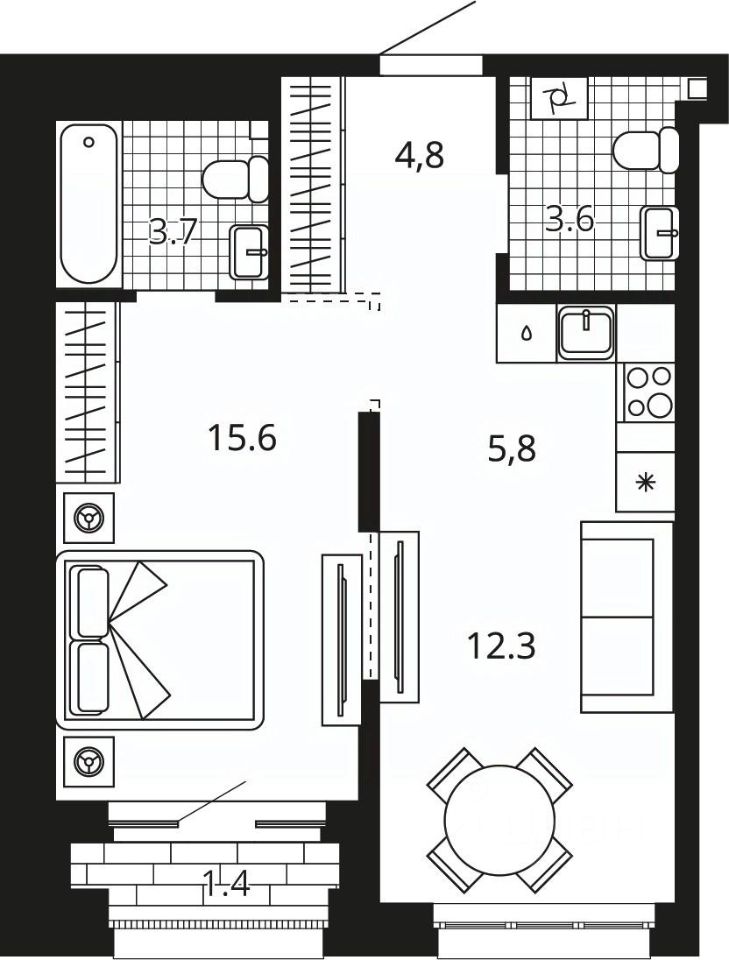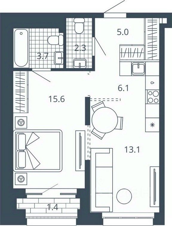 Жилая площадь15,6 м²