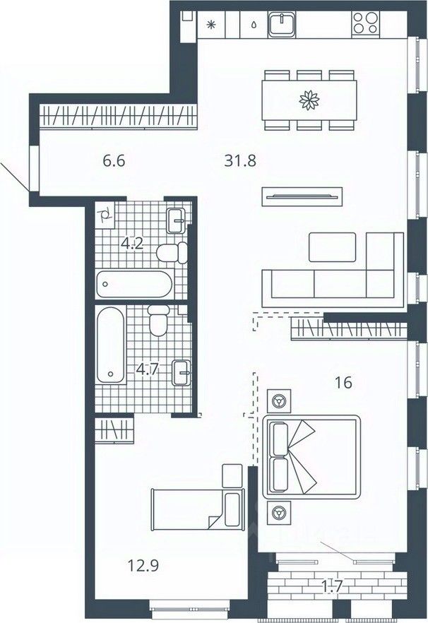 Жилая площадь28,8 м²