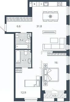 Площадь кухни29,3 м²