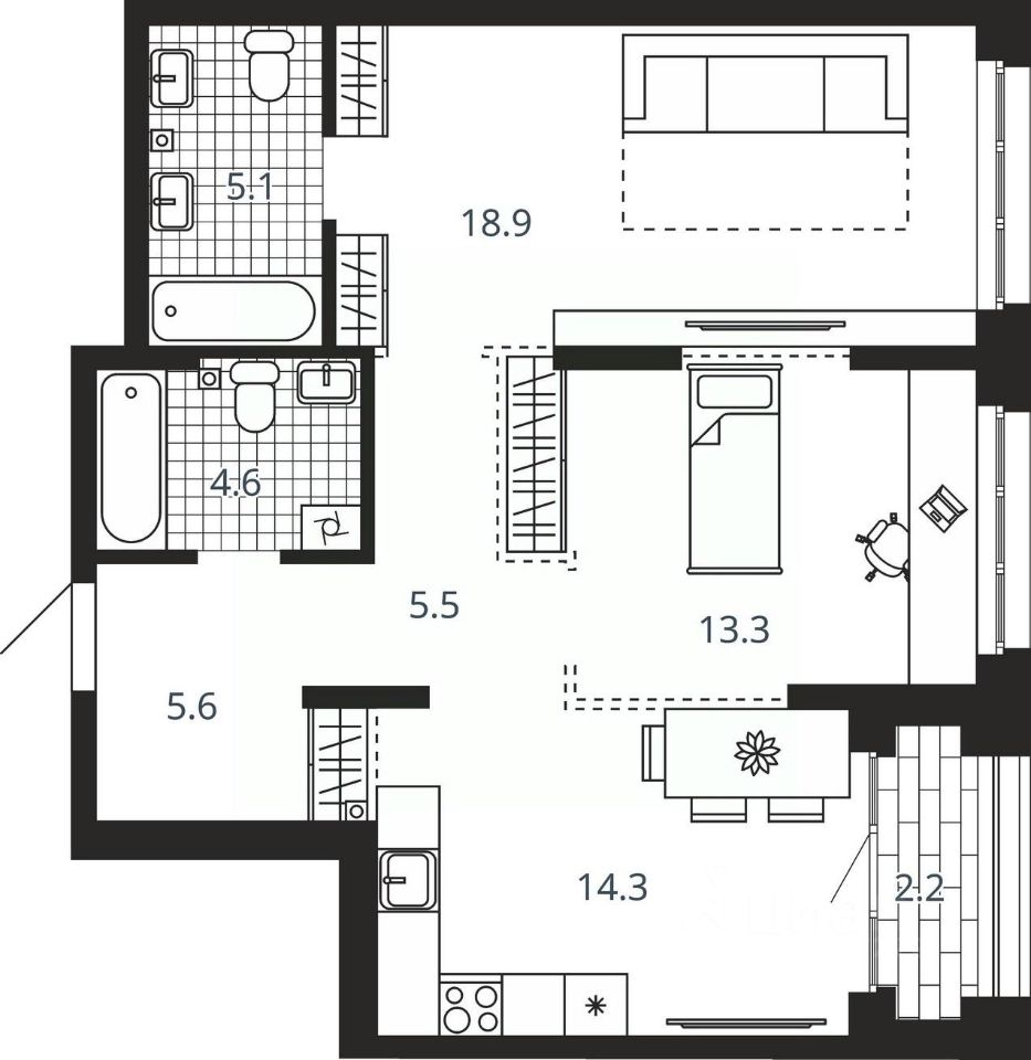 Площадь кухни14,3 м²