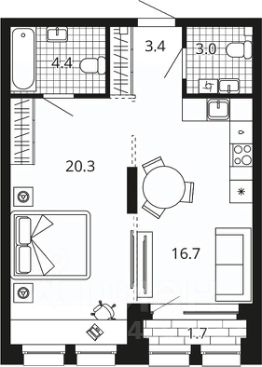 Жилая площадь20,3 м²