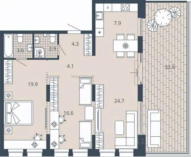 Площадь кухни32,6 м²