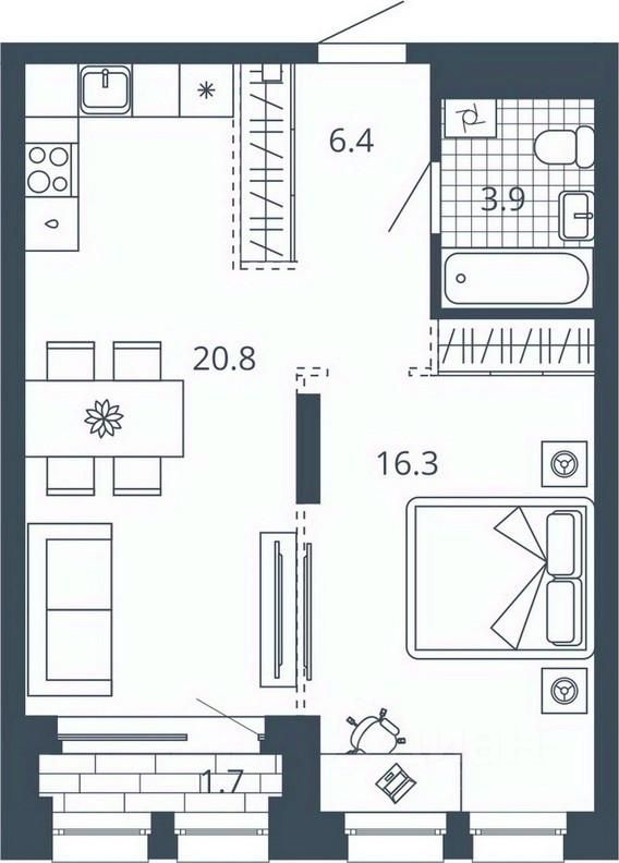 Общая площадь46,8 м²