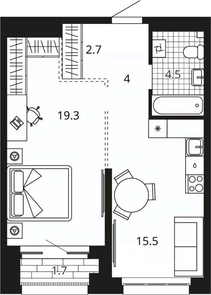 Жилая площадь19,3 м²