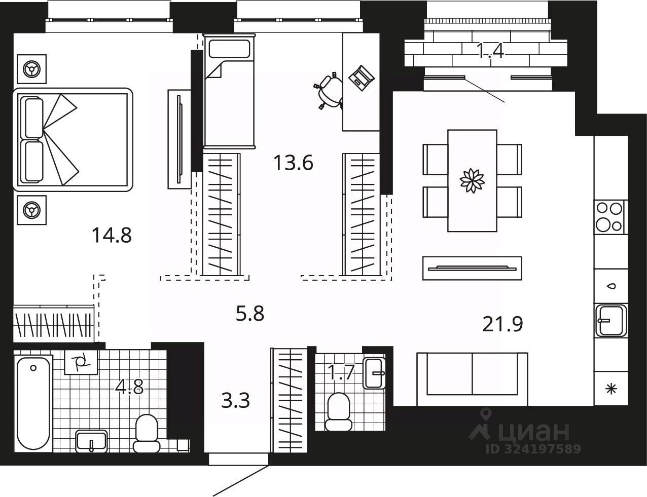 Общая площадь67,3 м²