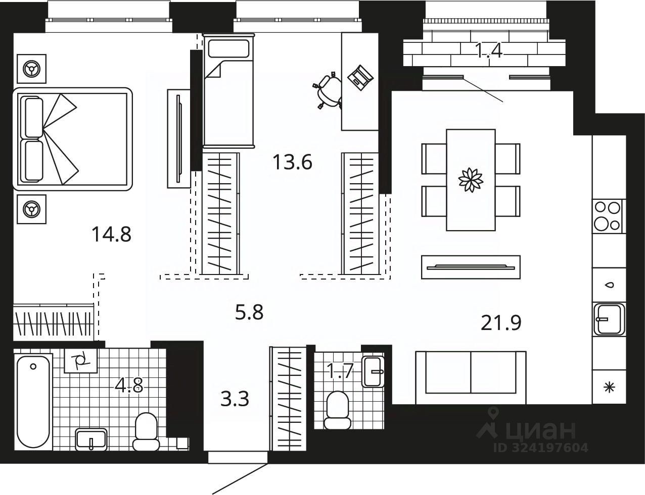 Площадь кухни21,9 м²
