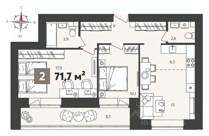 Продаётся 2-комнатная квартира в сданном доме (дом 4-1), срок сдачи: II-кв. 2025, общей площадью 72 кв.м., на 5 этаже. ЖК "Новелла" имеет выгодное расположение: парки, скверы, роллердром, широкий выбор магазинов - все в шаговой доступности.Во дворе "Новеллы" запланированы современные игровые комплексы с безопасным покрытием и шумозащитный экран по периметру - для сохранения вашего спокойствия. Поэтому "Новелла" - воплощение мечты людей, которые ежедневно ищут варианты жилья доступного, но при этом комфортного и не удаленного от городских мест притяжения.ЖК "Новелла" с точки зрения планировок - это сочетание традиций и инноваций: можно подобрать квартиру классической планировки, а можно выбрать, например, с окном в санузле или большой кухней-гостиной, из которой можно попасть во все другие комнаты.В вашей истории должно быть красивое жилье и безопасный двор для спокойного отдыха. Жилой комплекс "Новелла" - новая история вашей жизни.