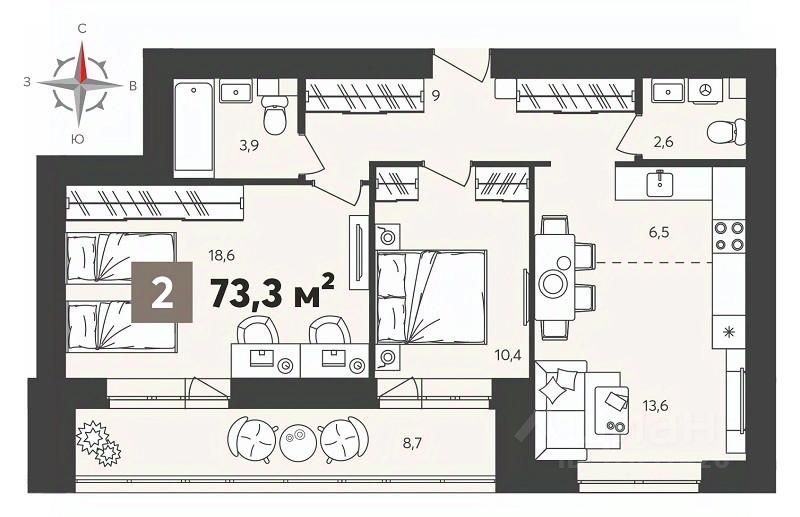 Продаётся 2-комнатная квартира в сданном доме (дом 4-1), срок сдачи: II-кв. 2025, общей площадью 73 кв.м., на 13 этаже. ЖК "Новелла" имеет выгодное расположение: парки, скверы, роллердром, широкий выбор магазинов - все в шаговой доступности.Во дворе "Новеллы" запланированы современные игровые комплексы с безопасным покрытием и шумозащитный экран по периметру - для сохранения вашего спокойствия. Поэтому "Новелла" - воплощение мечты людей, которые ежедневно ищут варианты жилья доступного, но при этом комфортного и не удаленного от городских мест притяжения.ЖК "Новелла" с точки зрения планировок - это сочетание традиций и инноваций: можно подобрать квартиру классической планировки, а можно выбрать, например, с окном в санузле или большой кухней-гостиной, из которой можно попасть во все другие комнаты.В вашей истории должно быть красивое жилье и безопасный двор для спокойного отдыха. Жилой комплекс "Новелла" - новая история вашей жизни.