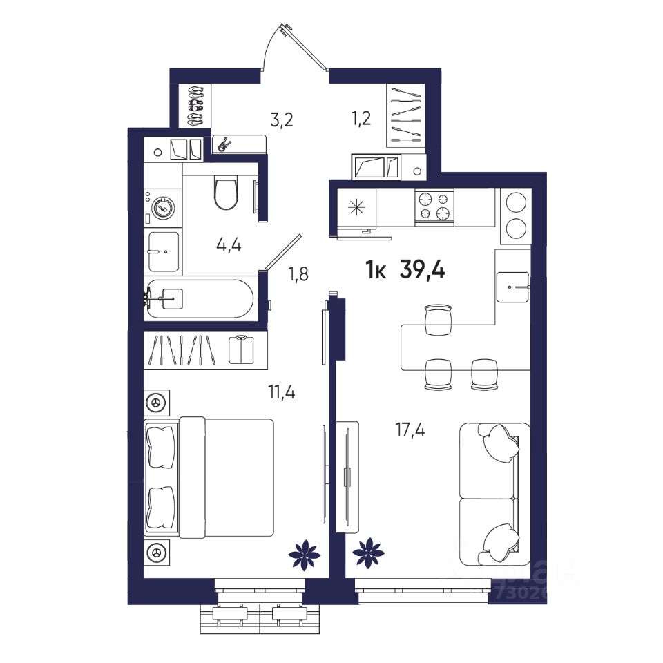 Общая площадь39,4 м²