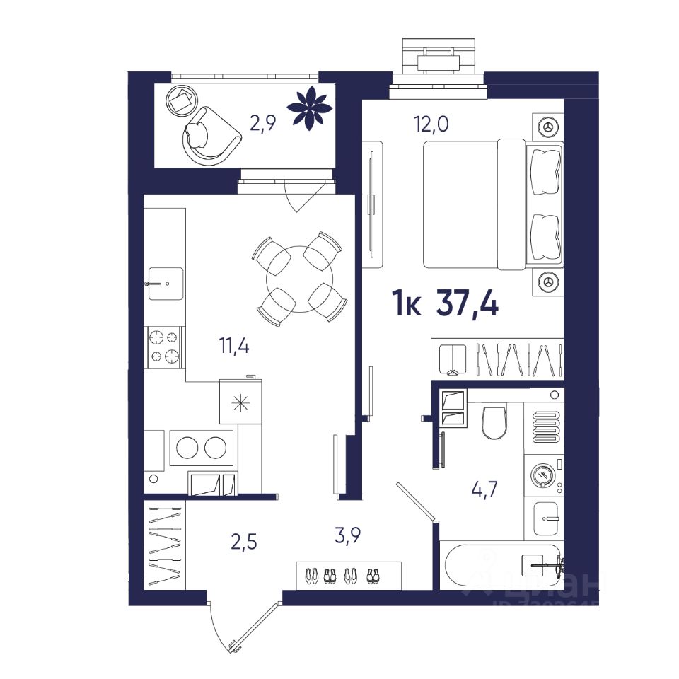 Общая площадь37,4 м²