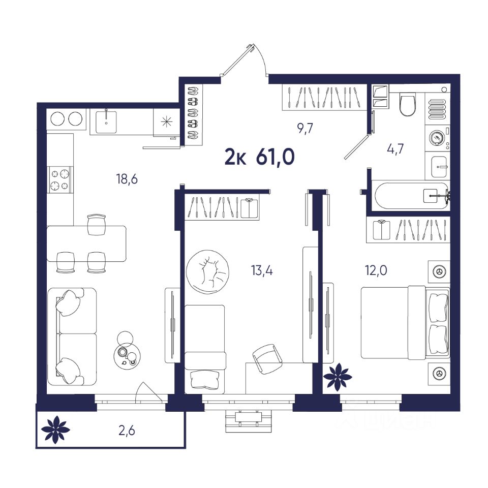 Общая площадь61 м²
