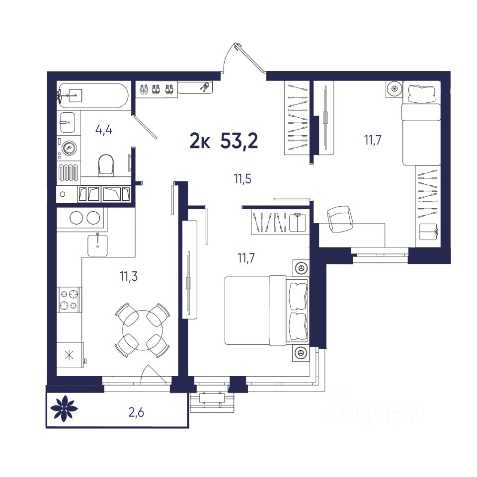 Общая площадь53,2 м²