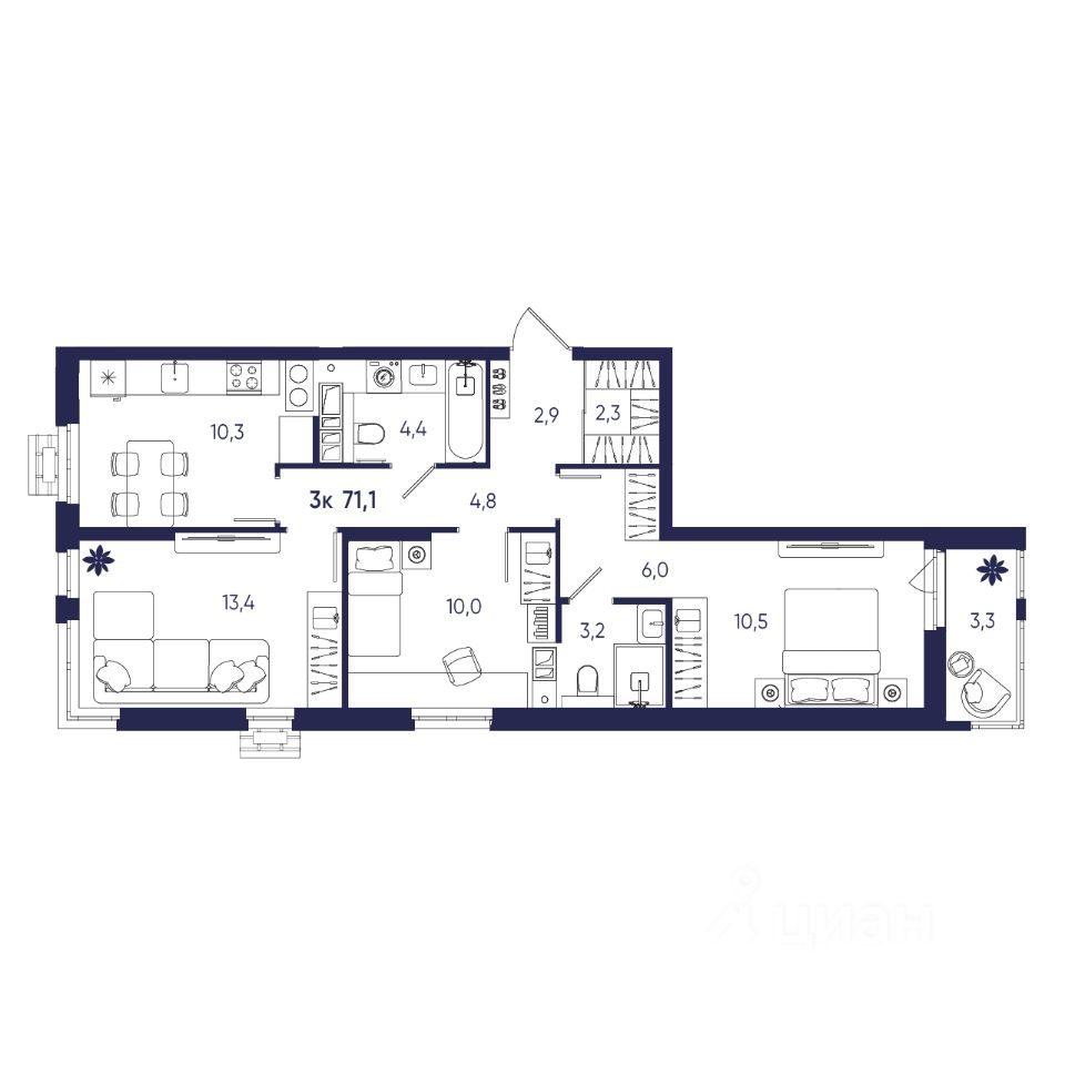Общая площадь71,1 м²