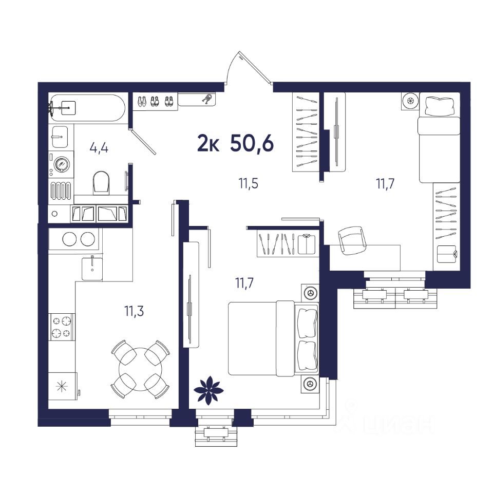 Общая площадь50,6 м²