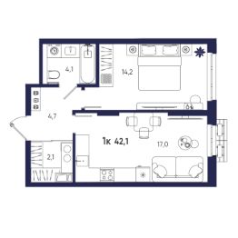 Общая площадь42,1 м²
