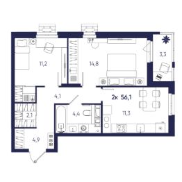 Общая площадь56,1 м²