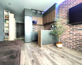 В ПОДАРОК СОВРЕМЕННЫЕ кухонный гарнитур с варочной панелью и вытяжкой, барная стойка, диван, шкаф-купе, кондиционер.